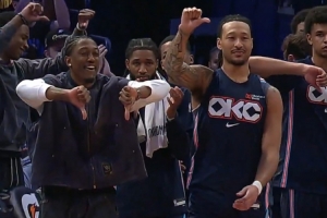 GIF-卡魯索快攻不扣籃 雷霆替補(bǔ)席集體弱爆了招呼