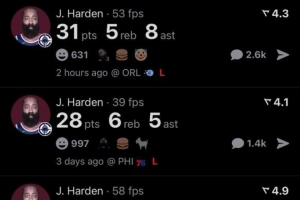 過去四場比賽,哈登都砍下了25+5+5的數據,據數據媒體Real Sports,36歲87天的哈登是達成這一成就的最老后衛(wèi)。