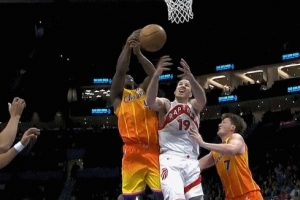 GIF-賽恩·詹姆斯與珀爾特爾爭搶籃板出界,裁判吹猛龍球權;黃蜂挑戰(zhàn)成功,拿回球權