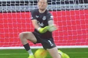 這次撲救中,皮克福德疑似閉眼導(dǎo)致出現(xiàn)下蛋失誤,引發(fā)球迷群嘲。丟球后,皮克福德懊惱跪地,無(wú)奈搖頭苦笑,并與隊(duì)友進(jìn)行了一番交流。