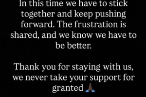 中場(chǎng)帕佩·薩爾在賽后通過(guò)社媒發(fā)文向球迷們致歉:“在這段時(shí)期,我們必須團(tuán)結(jié)一致,繼續(xù)前進(jìn)。我們同樣感到沮喪,并且深知我們必須做得更好?!?/p>