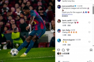 本場(chǎng)比賽拉什福德為孔德送出精彩助攻,賽后他也在社媒曬出本場(chǎng)照片,配文寫道:“在主場(chǎng)拿下歐冠勝利!感謝大家的支持!”