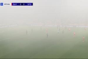 本場(chǎng)比賽下半場(chǎng)因?yàn)榘萑士磁_(tái)球迷燃放煙花,從第47分鐘開(kāi)始,場(chǎng)內(nèi)飄起煙霧,在之后十幾分鐘能見(jiàn)度極低,煙霧彌漫猶如仙境。這期間基米希還烏龍丟球,很可能就是受到煙霧影響。