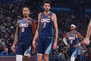 體育資訊12月11日訊 NBA杯1/4決賽,雷霆半場(chǎng)74-48領(lǐng)先太陽(yáng)。