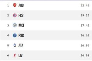 體育資訊12月11日訊 歐冠結(jié)束聯(lián)賽階段前6輪的爭奪,數(shù)據(jù)機(jī)構(gòu)Opta預(yù)測了歐冠聯(lián)賽階段的最終排名。