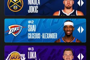 ??官網(wǎng)MVP榜:約基奇/亞歷山大/東契奇蟬聯(lián)前三 里夫斯升至第七