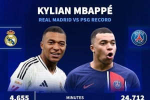 體育資訊7月9日訊 德國轉(zhuǎn)會市場統(tǒng)計了姆巴佩效力皇馬和巴黎期間的數(shù)據(jù),并做出對比。