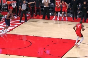 ??關(guān)鍵失誤:哈登沒有回頭 巴圖姆踩線后神情低落 盧直接掛機