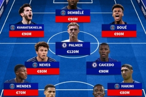 克瓦拉茨赫利亞(巴黎,9000萬歐)、登貝萊(巴黎,9000萬歐)、杜埃(巴黎,9000萬歐)