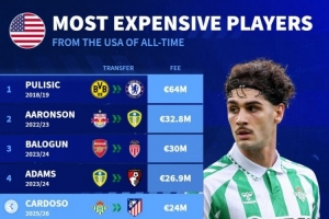 體育資訊7月17日訊 卡爾多索轉會馬競已經官宣,《轉會市場》統(tǒng)計顯示他也是轉會費第5貴的美國球員。