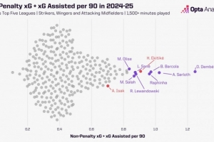 數(shù)據(jù)統(tǒng)計(jì)顯示,不計(jì)點(diǎn)球情況下,?;倏松腺惣驹诼?lián)賽的每90分鐘預(yù)期參與進(jìn)球值高達(dá)0.91,這一數(shù)字僅次于登貝萊、索爾洛特、巴爾科拉和拉菲尼亞,在同期至少出場(chǎng)1500分鐘 的五大聯(lián)賽前場(chǎng)球員(中鋒、邊鋒和前腰)位列第5位。