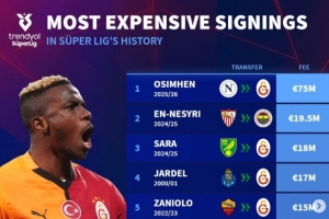 體育資訊7月31日訊 奧斯梅恩轉(zhuǎn)會加拉塔薩雷只待官宣,《轉(zhuǎn)會市場》也統(tǒng)計了土耳其球隊歷史最貴買人榜。