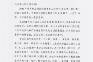 新黃河報道稱,6月20日,中國足球協(xié)會向山東泰山足球俱樂部致感謝函,對山東泰山足球俱樂部全力支持國家隊球員征調,備戰(zhàn)2026年世界杯亞洲區(qū)預選賽第三階段(18強賽)的比賽表示感謝,并對山東泰山隊員在國家隊集訓、比賽期間表現出的拼搏精神和職業(yè)態(tài)度給予充分肯定。