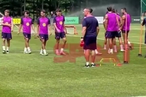 體育資訊8月3日訊 《每日體育報》報道,巴薩在訓(xùn)練中用灑水器降溫。