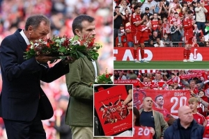 在對陣普雷斯頓、米蘭和橫濱水手的季前賽中,俱樂部已向兩兄弟致哀。但回到安菲爾德,紅軍傳奇菲爾-湯普森和畢巴主席喬恩-烏里亞特在KOP看臺前的球場上敬獻(xiàn)了花圈。