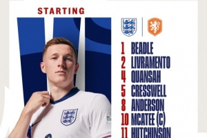英格蘭U21首發(fā):1-比德爾、2-利夫拉門托、4-寬薩、5-克雷斯韋爾、8-埃利奧特-安德森、10-麥卡蒂、11-哈欽森、16-辛謝爾伍德、18-史坦斯費(fèi)爾德、19-埃利奧特、20-阿萊克斯-斯科特
