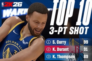 體育資訊8月12日訊 今天,2K26官方曬出了新賽季三分能力值Top10,庫(kù)里以99分高居第一,詳情如下: