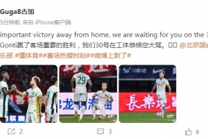 賽后,古加在社媒曬照并寫道:“贏了客場重要的勝利,我們30號在工體恭候您大駕。????”