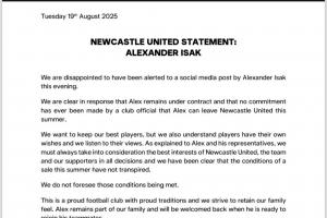 紐卡在聲明中表示:今夏轉(zhuǎn)會條件尚未達(dá)成,球隊也不認(rèn)為這些條件會得到滿足。因此伊薩克大概率走不了,但喜鵲隨后在文末示好:亞歷山大仍是我們大家庭的一員,當(dāng)他準(zhǔn)備好重返球隊時,我們將熱烈歡迎他回歸。