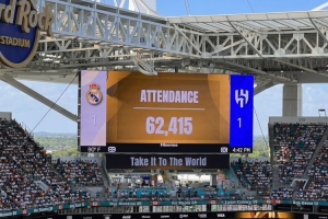 體育資訊6月19日訊 現(xiàn)場(chǎng)播報(bào)數(shù)據(jù)顯示,皇馬1-1利雅得新月的世俱杯小組賽首輪共有62415名球迷現(xiàn)場(chǎng)觀賽。