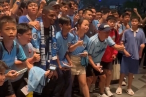 27日晚8點,韋斯利乘坐商務車抵達深圳南山香格里拉大酒店,近百名忠實球迷早已在酒店守候。