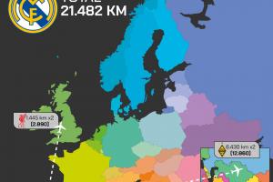 皇馬歐冠客場(chǎng)往返總路程:21482公里