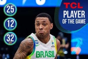 賽后,巴西后衛(wèi)亞戈-桑托斯當選全場最佳,此役他出戰(zhàn)34分鐘,14投7中,三分6投3中,罰球8罰8中,砍下25分4籃板12助攻。