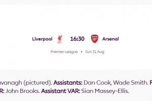 體育資訊08月31日訊 英超官方宣布,今天利物浦vs阿森納的裁判組調整,原VAR薩爾斯布里被更換為約翰-布魯克斯。