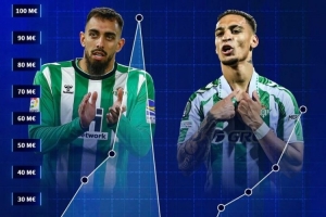 貝蒂斯2019-20賽季一共花費(fèi)了1億歐元,而本賽季他們投入6200萬(wàn)歐元,引進(jìn)了安東尼等球員,這是球隊(duì)自2019-20賽季之后的最高紀(jì)錄。