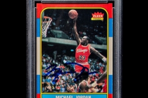 這張喬丹球星卡品相評(píng)級(jí)為9分(滿分10分),簽名字跡評(píng)級(jí)為滿分10分,且屬于喬丹去年秘密簽署的一批新秀卡之一。
