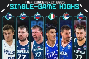 體育資訊9月17日訊 今天,男籃歐錦賽官推曬出了本屆賽事的單場(chǎng)得分榜。具體為: