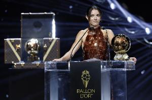 體育資訊9月24日訊 邦馬蒂連續(xù)第三次捧起女足金球獎,西媒elperiodico撰文介紹邦馬蒂身穿的這身華麗禮服。