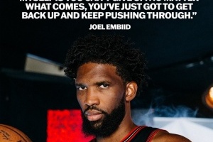 在照片上,附有恩比德的一段話:“我一直告訴自己的一件事就是,你不能放棄。無論遇到什么,你都必須重新站起來,堅持下去?!?/p>