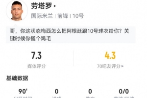 體育資訊7月1日訊 國米在世俱杯16強戰(zhàn)0-2不敵弗魯米嫩塞,勞塔羅本場數據如下: