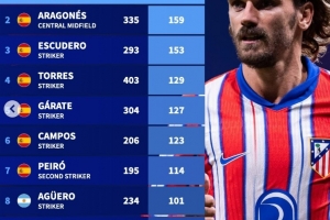 體育資訊10月1日訊 在本輪歐冠馬競(jìng)5-1擊敗法蘭克福的比賽中,格列茲曼打進(jìn)個(gè)人馬競(jìng)生涯第200球。德轉(zhuǎn)也盤點(diǎn)了馬競(jìng)隊(duì)史射手榜,其中格列茲曼居首,具體如下: