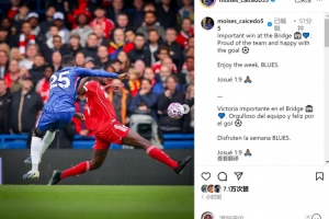 凱塞多社媒曬出比賽照片,并寫道:“在斯坦福橋取得重要勝利,為球隊感到驕傲,為進球感到開心。享受這個周末吧,藍軍球迷們?!?/p>