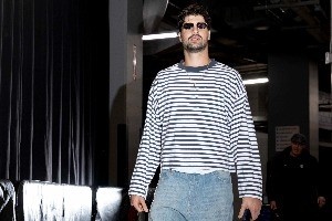 楊瀚森白色連帽衫套裝清爽干練,霍勒迪也是棕色套裝,阿夫迪亞居家風(fēng)搭配黑超,格蘭特上衣印有宮崎駿動(dòng)畫《千與千尋》。