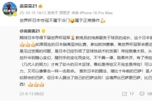體育資訊10月15日訊 昨日的麒麟杯,日本主場(chǎng)讓二追三逆轉(zhuǎn)擊敗巴西。今日,前國(guó)腳高雷雷發(fā)文再次談到日本足球。