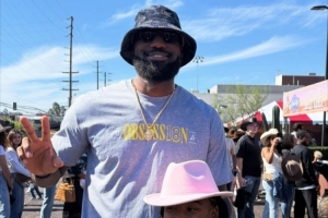 “非常感謝@湖人 他們是一個(gè)如此出色的家族企業(yè),現(xiàn)在又迎來了新的老板。感謝@東契奇和勒布朗與我的第一個(gè)孫女 @tru_jru_合影,同時(shí)也要感謝奧斯汀·里夫斯與我的女婿互動?!贝仁榔綄懙?。