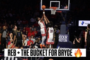 詹姆斯轉(zhuǎn)發(fā)了亞利桑那大學(xué)男籃官方賬號發(fā)布的他的小兒子布萊斯在比賽中完成補籃的照片,并配文道:“耶——6號!”