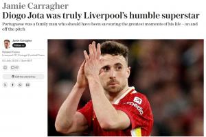 體育資訊07月03日訊 利物浦名宿卡拉格在其電訊報專欄撰文,悼念剛剛去世的利物浦前鋒若塔,以下為文章編譯。