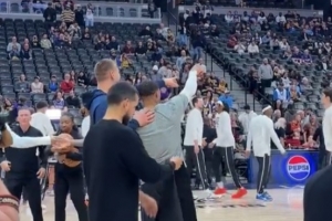 賽前,威少與約基奇在投籃熱身時親切互動,兩人短暫寒暄后告別。