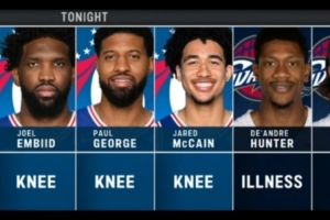 均傷兵滿營!76人vs騎士共6人缺席:恩比德/喬治/亨特/斯特魯斯等