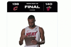 體育資訊11月11日訊 NBA常規(guī)賽,熱火140-138加時險勝騎士。