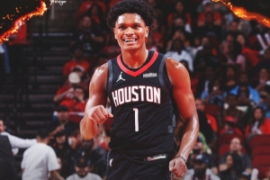 賽后,火箭官方曬出本場(chǎng)贏球海報(bào),封面人物是阿門·湯普森。