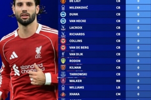 本賽季英超非門將全勤榜:索博、范戴克、加布、德里赫特在列