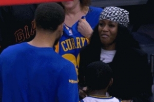 本場(chǎng)庫(kù)里因腳踝傷勢(shì)作壁上觀,但他還是在賽前積極配合球迷合影留念,小球迷母親露出了欣慰的笑容。