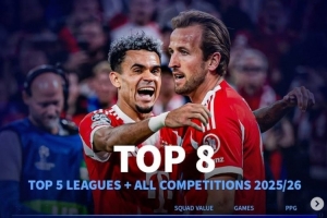 五大聯(lián)賽球隊本賽季各項賽事場均拿分榜:(及球隊總身價)