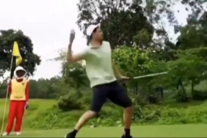 視頻中,克萊連續(xù)推桿不中,隨后惱羞成怒似乎將球扔了出去。