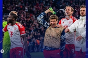 2017年2月十六強戰(zhàn)首回合:羅本內(nèi)切世界波打破僵局,桑切斯罰丟點球被撲但補射扳平,萊萬下半場幫助拜仁再次將比分超出,蒂亞戈雙響,穆勒鎖定勝局,最終5-1占據(jù)晉級先機。